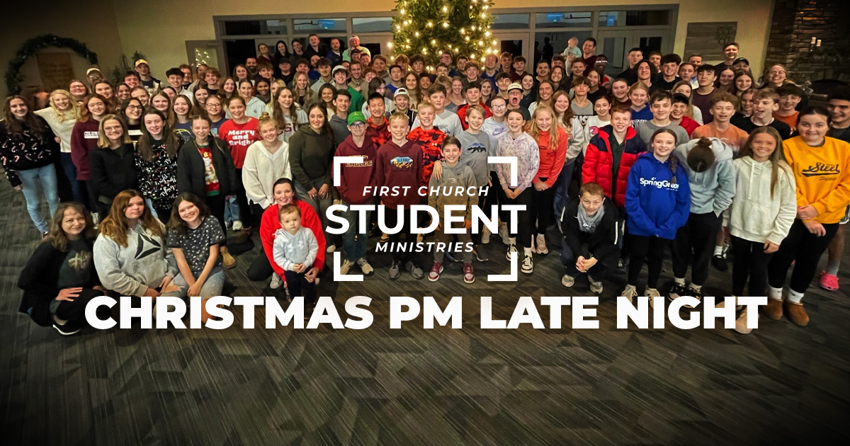 Wrap up the semester with a special Student Ministry Late Night Christmas hangout packed with high-energy games, a carol-filled worship set, and a Christmas message about real hope and joy. We’ll have plenty of pizza (and some festive surprises). This is the last First Church Students event before break - perfect for inviting a friend. Come ready to laugh, worship, and celebrate Jesus together!