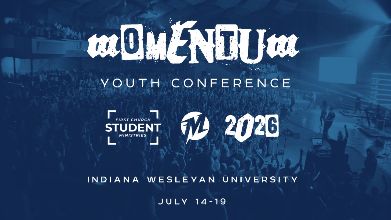 Join First Church Students at Momentum Youth Conference! Mark your calendars for July 14-19, 2026, in Marion, Indiana at Indiana Wesleyan! This is an opportunity to grow in your faith, build lasting friendships, and experience powerful worship and teaching that will challenge and encourage you. Momentum is a place to step away from distractions, hear from God in a real way, and be surrounded by others who are passionate about following Jesus. Whether you’re looking for renewal, direction, or deeper connection, this conference will equip and inspire you to live out your faith. Come expectant—God has something for you! This is for current 8th graders through current High School Seniors. Registration opens January 11, 2026!!